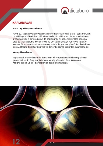 gerekmektedir. Bu amaçla boruiç ve dış yüzeyleri özel kumlama