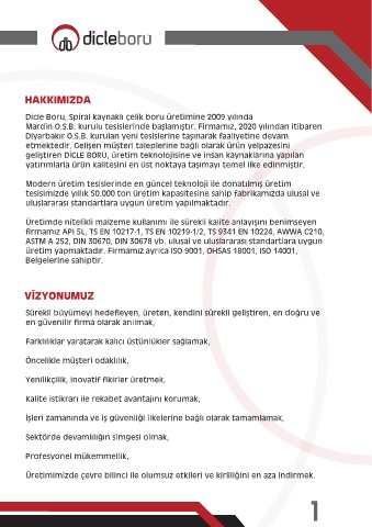 geliştiren DİCLE BORU, üretim teknolojisine ve insan kaynaklarına yapılan